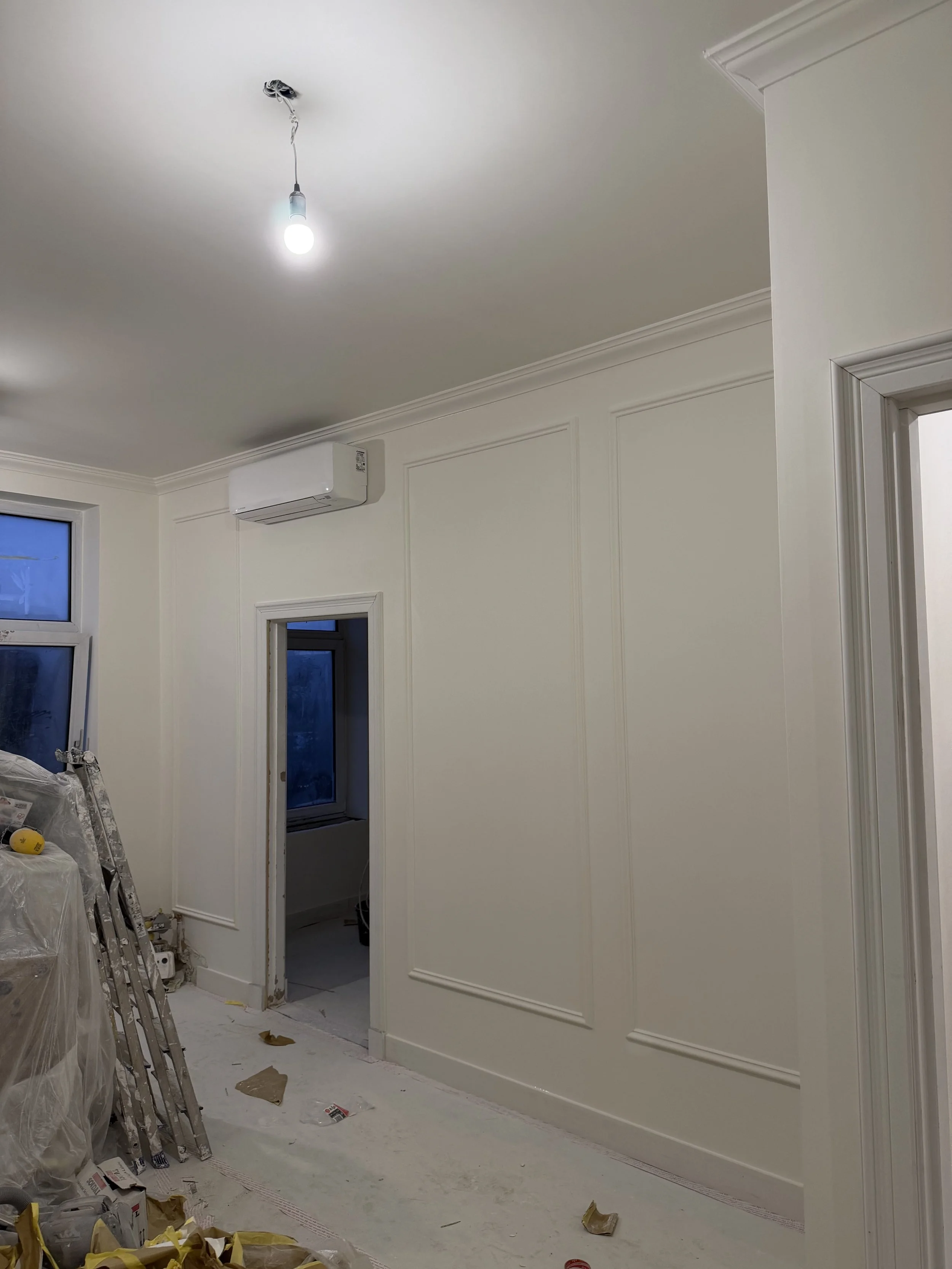 Wanneer de wanden in de basis vlak zijn, kunnen we dunpleister toepassen. Hiermee creëren we een gladde en moderne uitstraling die perfect geschikt is voor latex spuiten of schilderwerk. Dunpleister is ideaal om lichte oneffenheden weg te werken en wanden strak te trekken zonder dikke lagen.